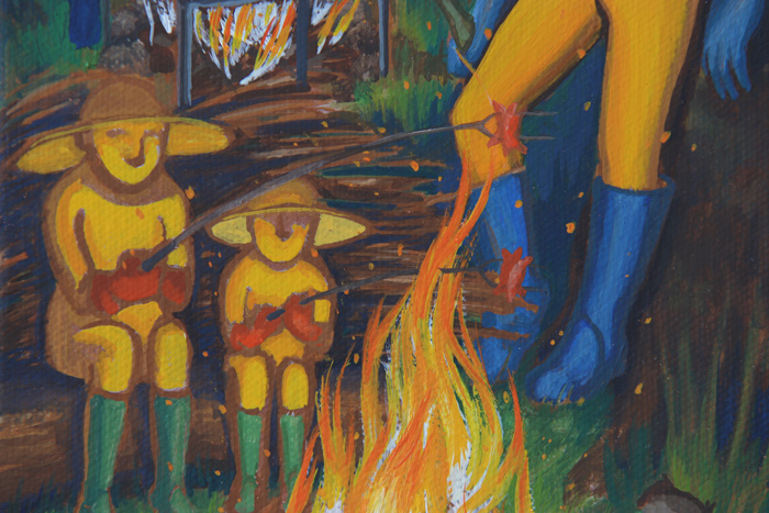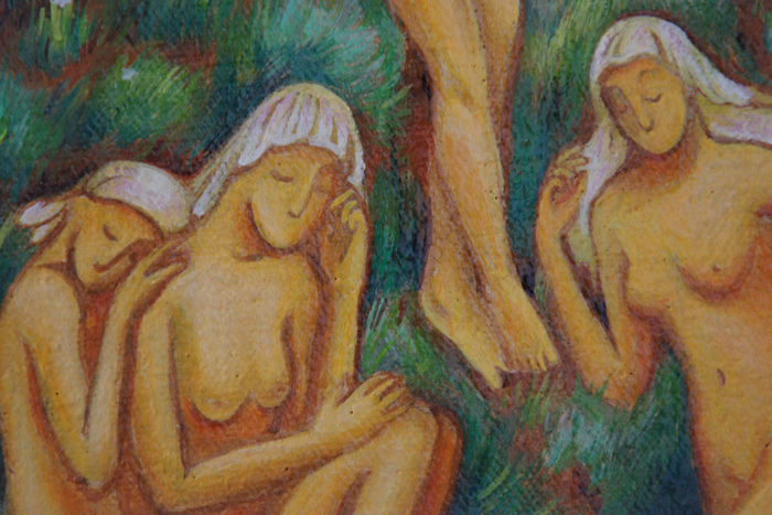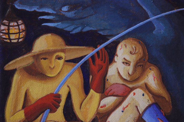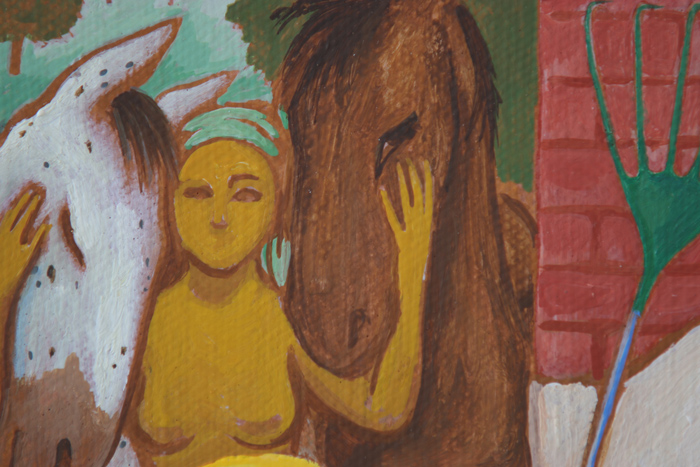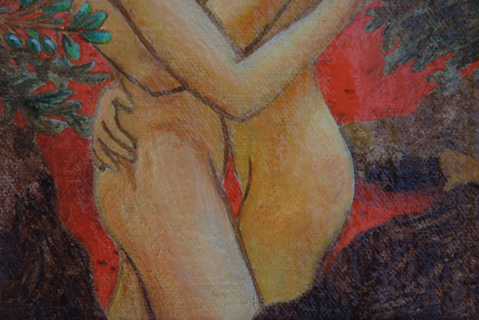 Tato série obrazů zahrnuje dvanáct maleb inspirujících se jednak starozákonními motivy (prorok Jonáš, zahrada Getsemanská), ve větší míře pak novozákonními ději a v menší míře kombinuje příběhy umučení raně křesťanských světců (Svatý Vavřinec). Pro malbu jsem zvolila formát 30 x 20 cm. Doteď jsem pracovala zejména s velkoformátovými obrazy, a naopak tyto malé formáty pro mě představovaly neprobádané prostředí a vynutily si zcela odlišný způsob práce než doposud.
