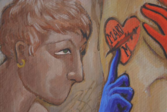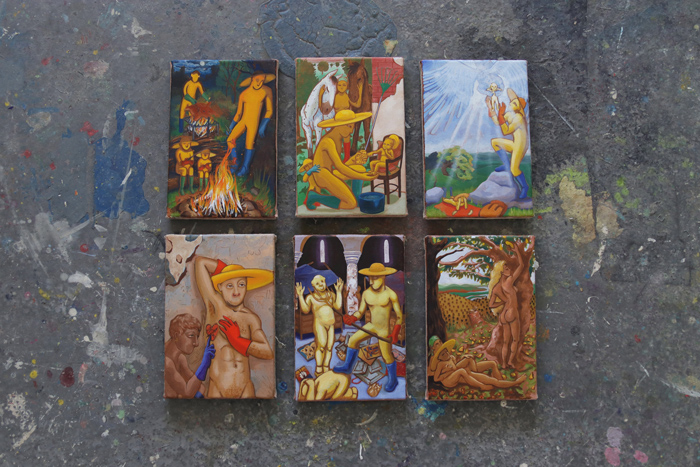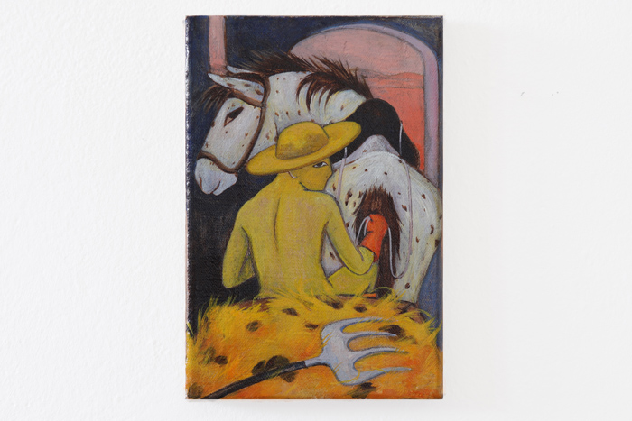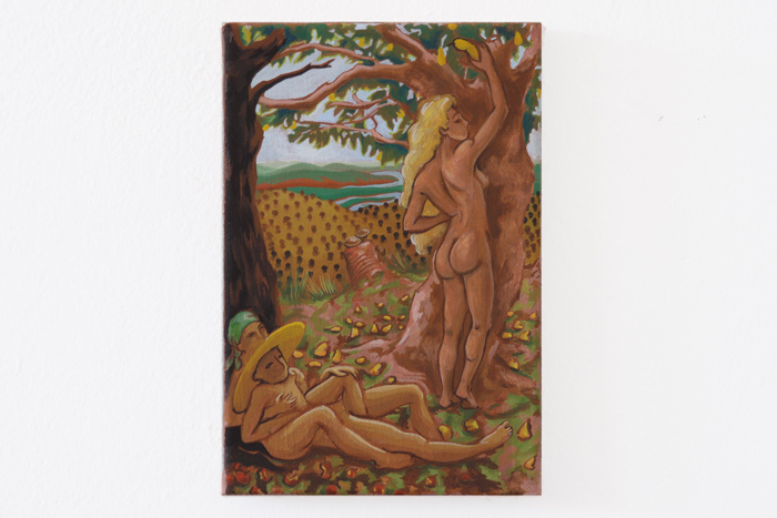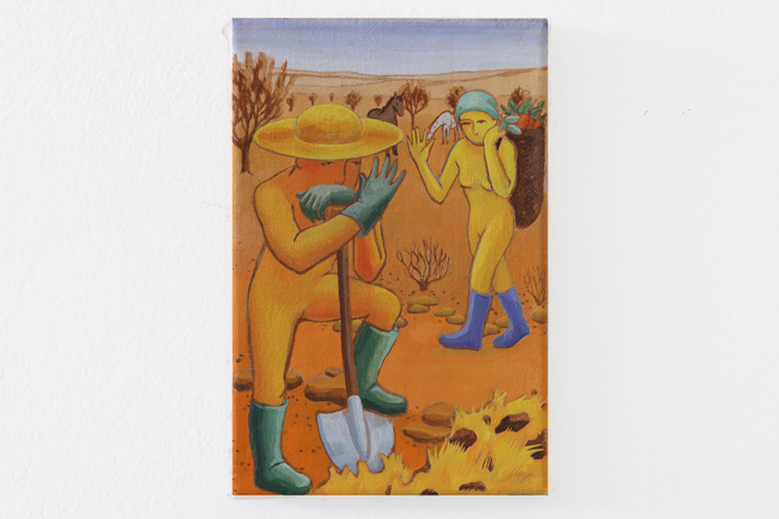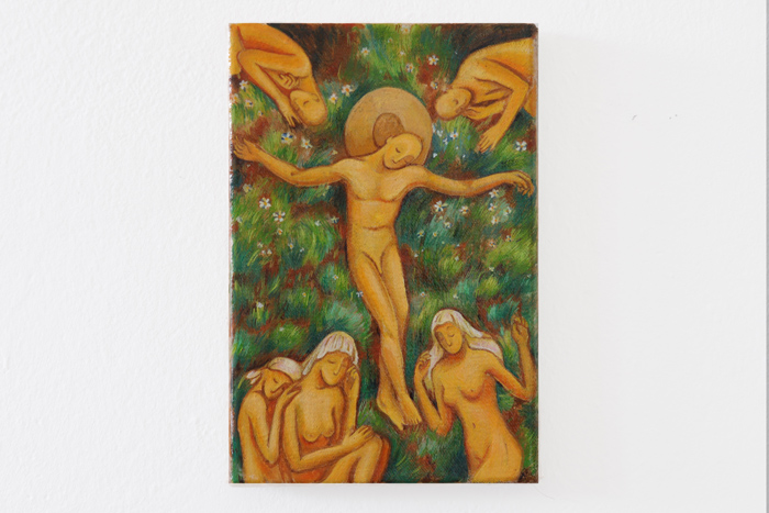 Christ the Gardener is a fascination of mine, a fascination that first erupted in the spring of 2022, when I had the opportunity to see Caspar Fraisinger's 16th century drawing of Christ the Gardener for the first time. Christ as gardener is a mistake. According to the Gospel of St. John (John 20:11-17), Mary Magdalene went to the tomb of Jesus Christ but did not find his body anymore because he had risen from the dead. Instead, she saw a man whom she mistook for the gardener, who was none other than the risen Christ. In my paintings I do not follow the traditional Christian narrative, but create my own. The stories in my paintings are not about Christ gardener, but Christ Gardener. Based on Mary Magdalene's mistake, I created my own character, experiencing a similar story to Christ of Nazareth, but in a completely different way.
