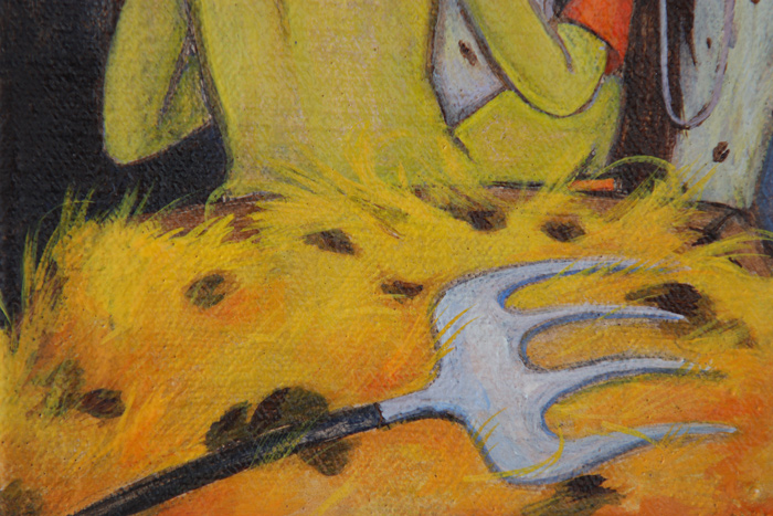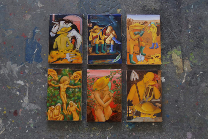 This series of paintings includes twelve paintings inspired partly by Old Testament motifs (the prophet Jonah, the Garden of Gethsemane), to a greater extent by New Testament events, and to a lesser extent combining the passion stories of early Christian saints (St. Lawrence). For the painting I chose a format of 30 x 20 cm. Until now I had worked mainly with large format paintings, and conversely these small formats represented an unexplored territory for me and forced a completely different way of working than before.