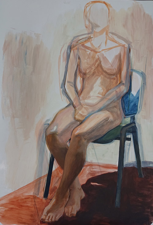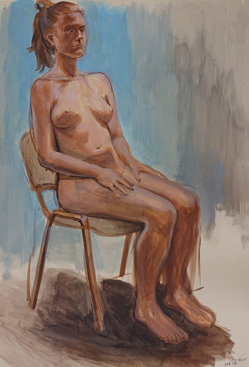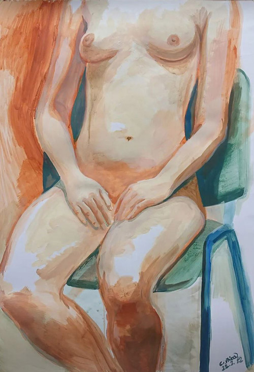 The series of figurative paintings and drawings based on live nude models was created as part of the subject "Evening drawing" taught at the Faculty of Fine Arts. Each drawing was created during one seminar, i.e. three teaching hours. The presentation of these paintings and drawings on the web portfolio is a selection of recent works. A wider selection can be seen on the Instagram profile in the stories under the sign "🦄".