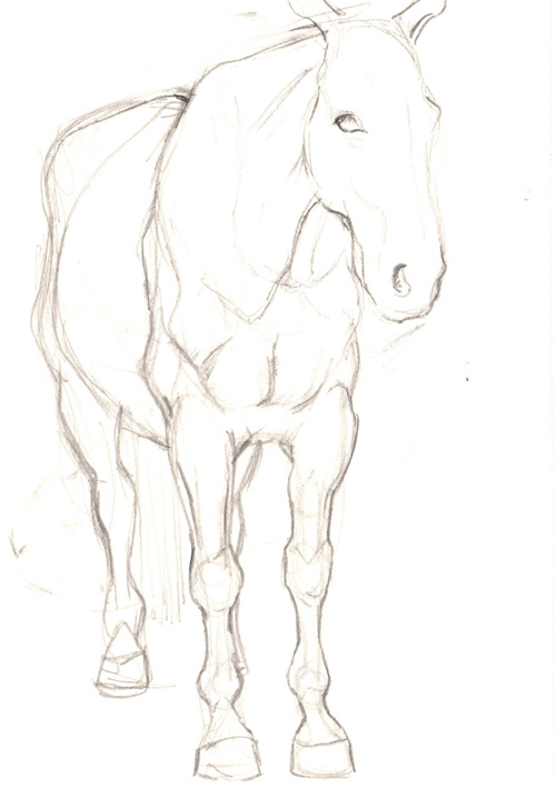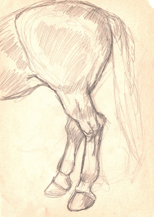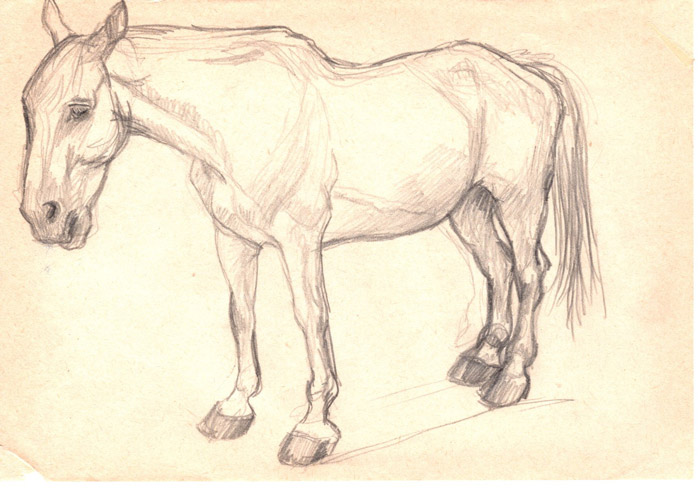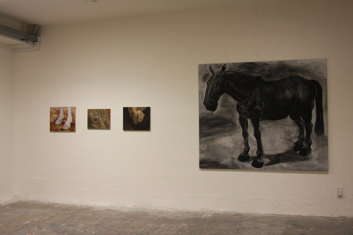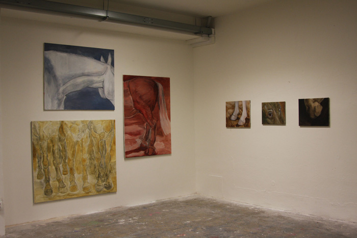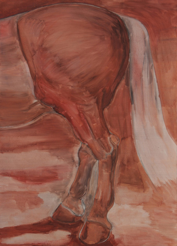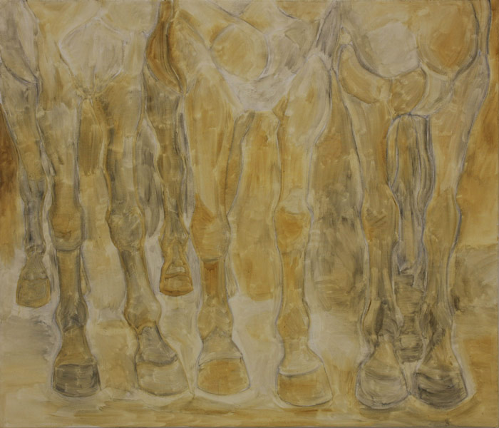 Opposite to the paintings from the series “Revelation of Horse”, which arose from my imagination, my short-term visions, paintings from the series “Return to Simplicity” resulted from studies of real model. The drawings from studies were transfered on formats of various dimensions, which were chose to be matching with particular segment. Images were subsequently supplemented with a layer of oil painting, which should originally serve as underpainting. It later showed that the underpainting is sufficient in its simplicity. In contrary with previous series of paintings the intention was not to incarnate a dream horse but to capture a physical beauty of real animal in its individual thing.