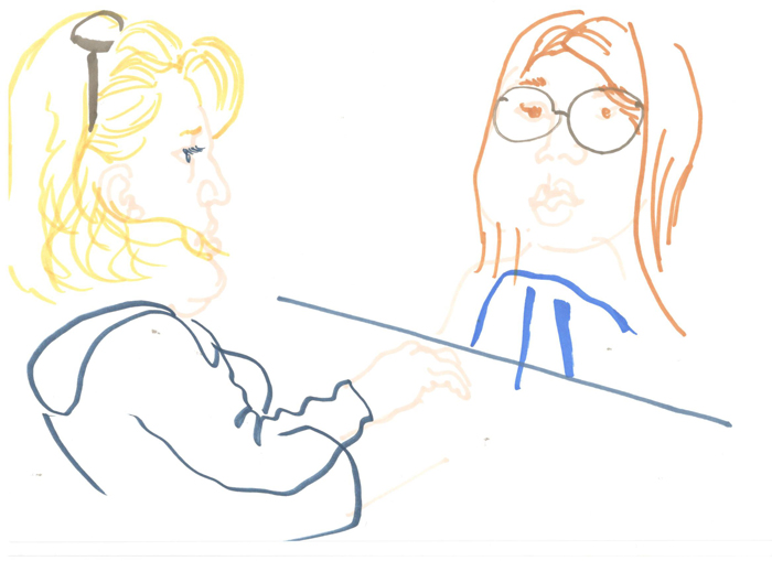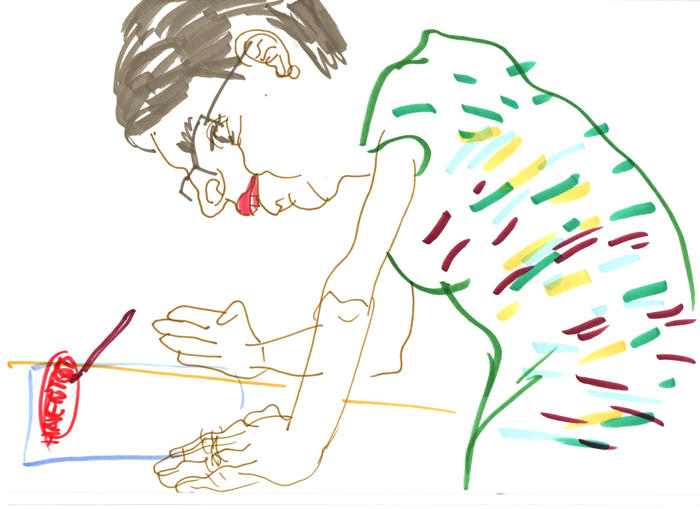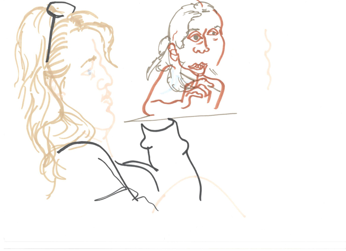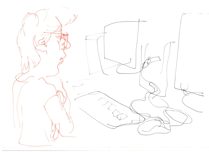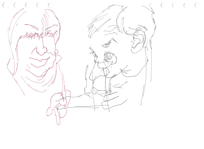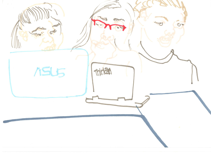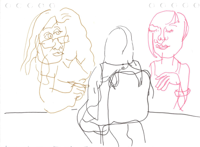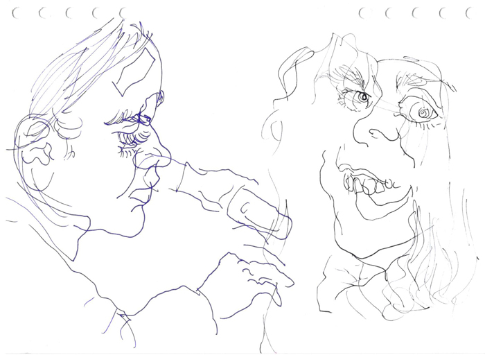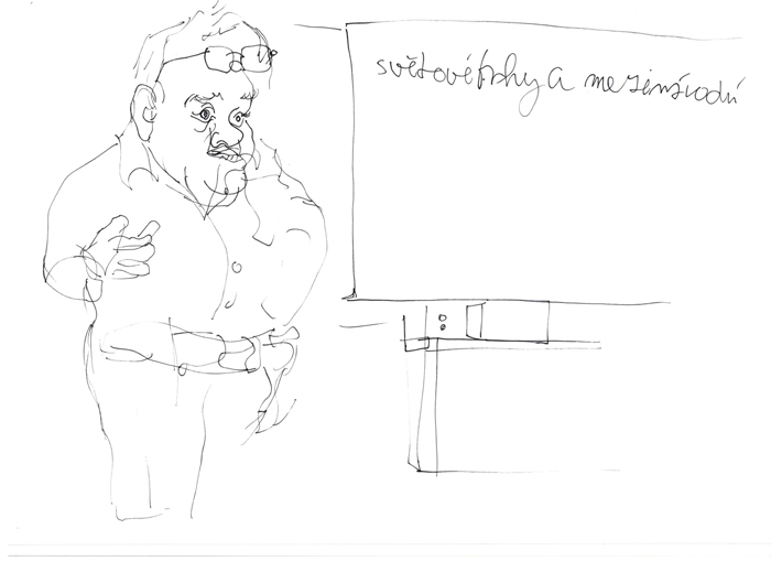 This is a series of drawings depicting classmates and teachers from the Secondary Art School in Brno. The series was created as part of a final exam assignment on the topic "school".