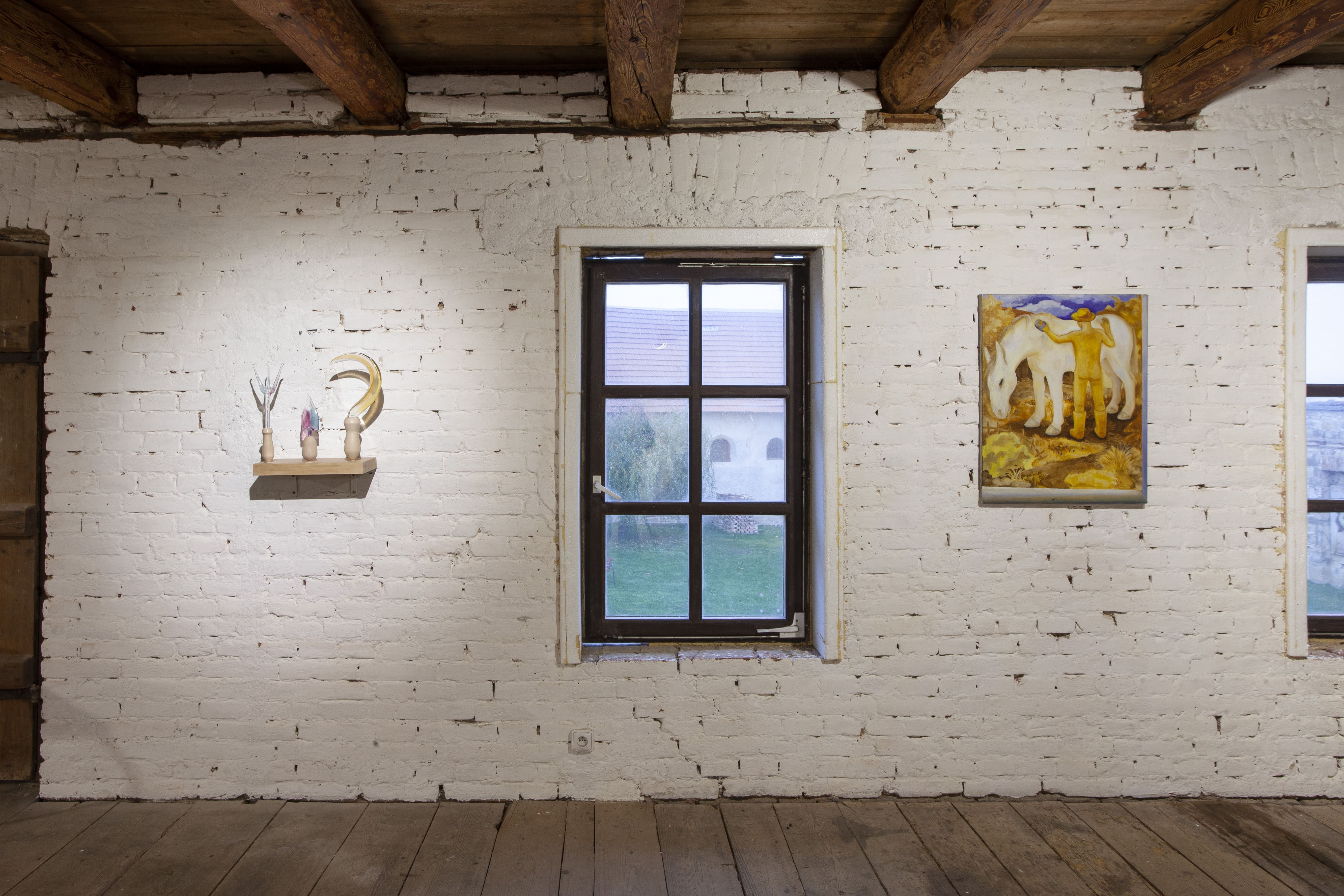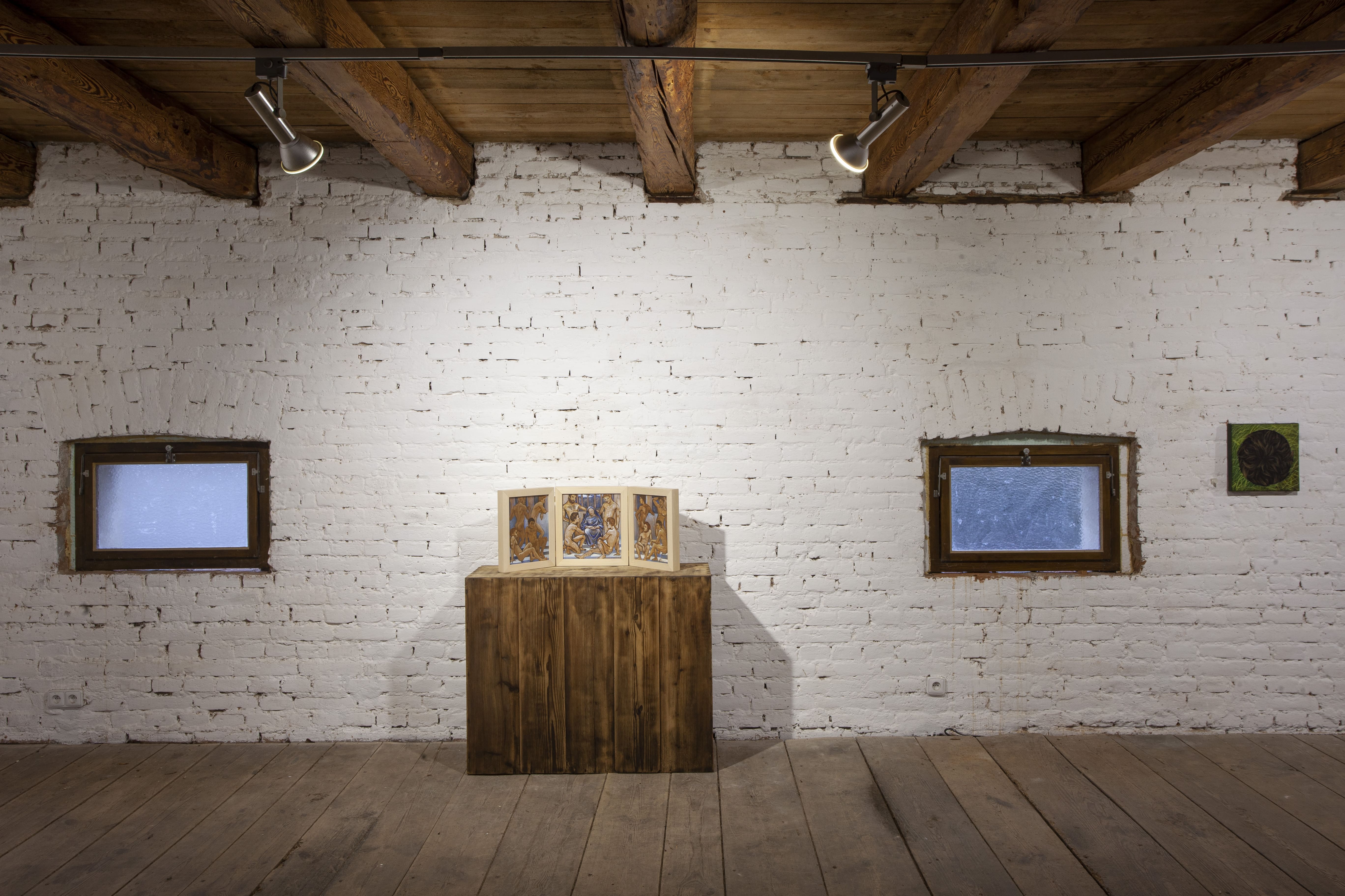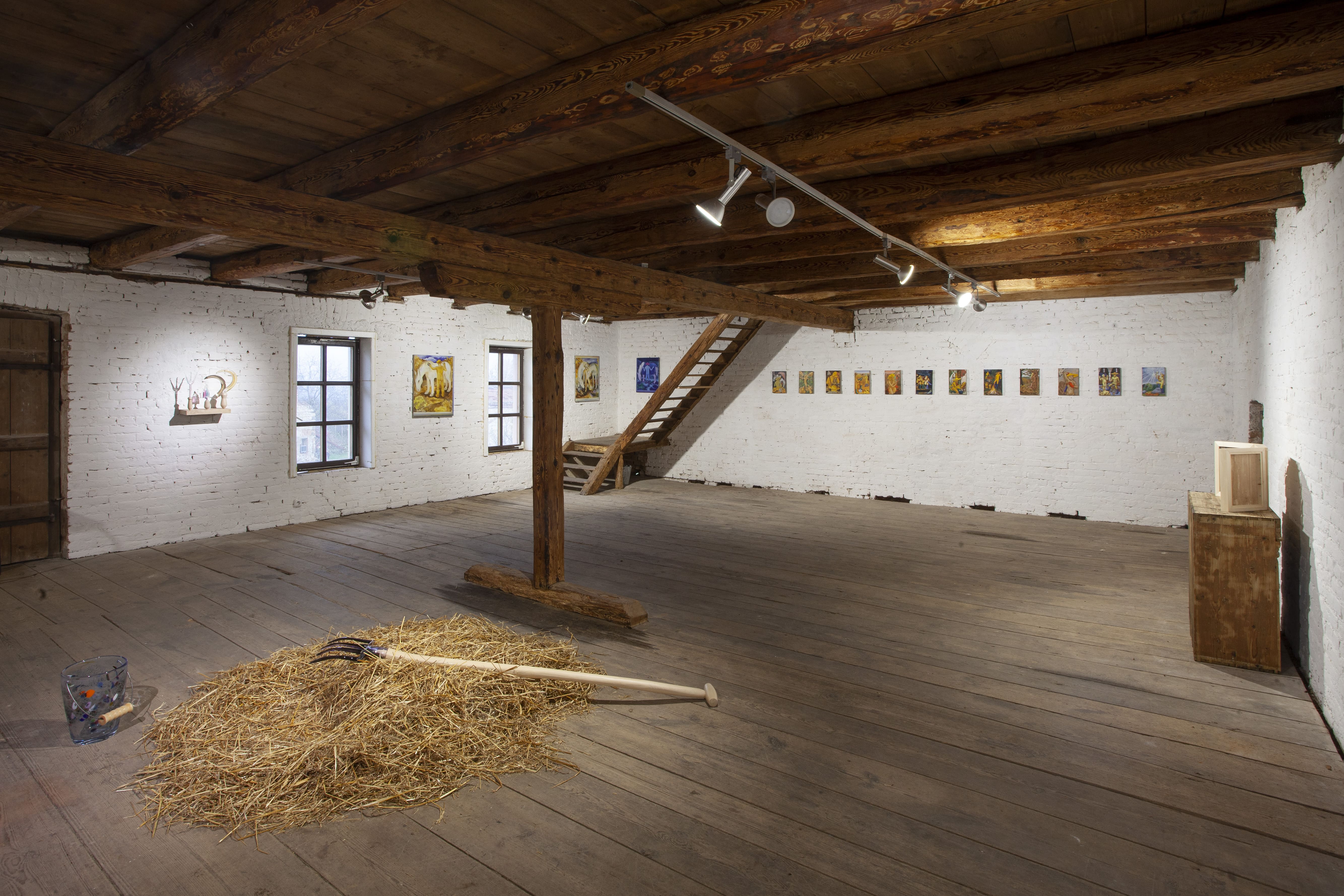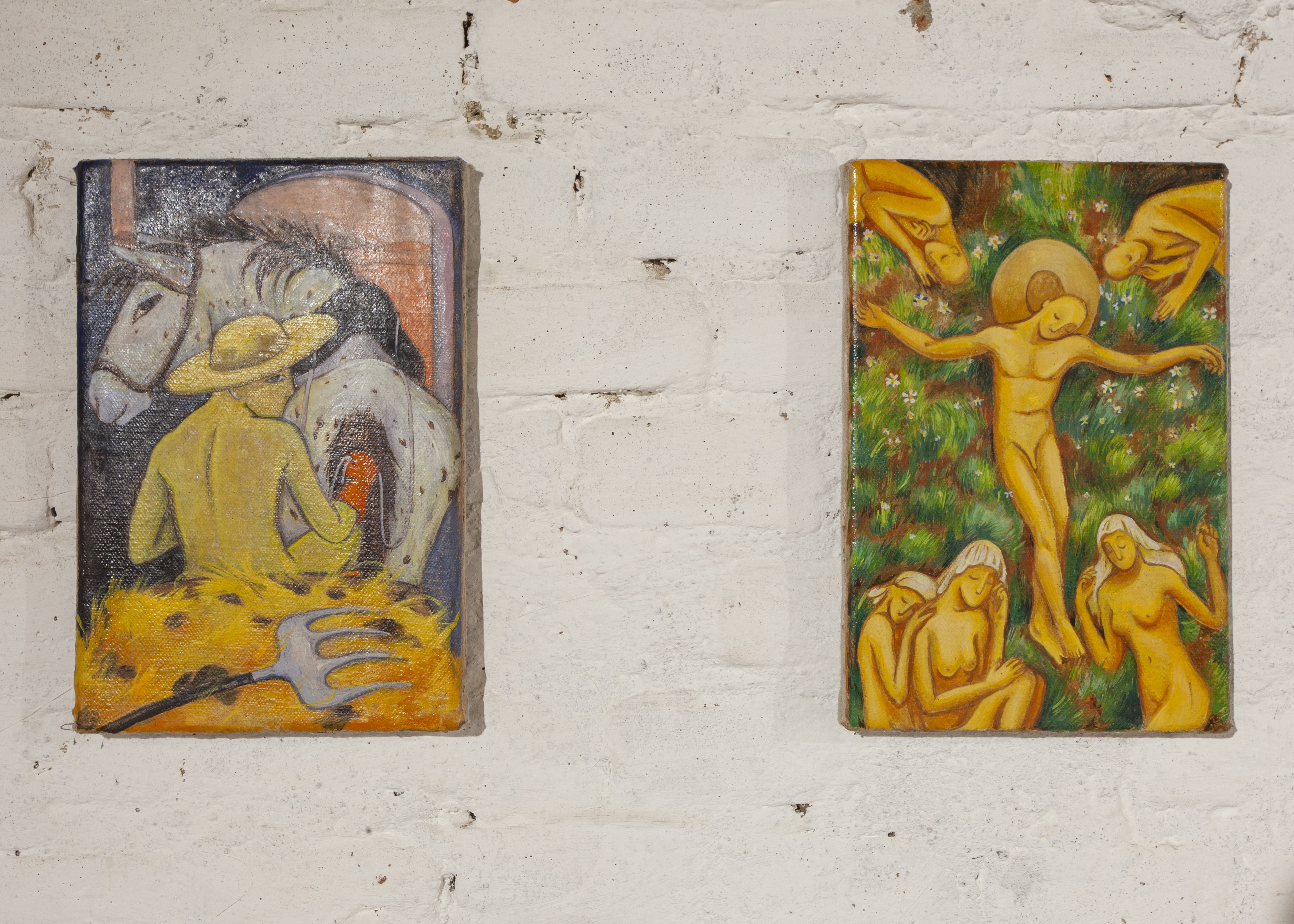 The paintings do not follow the traditional Christian narrative, but present their own storyline, which is only inspired by the traditional one. The cycle of twelve paintings on canvas is accompanied by gardening tools that (because of their characteristic fragility) can only be used by Christ Gardener. The installation also includes an altar triptych dedicated to the Virgin Mary among the Apostles.