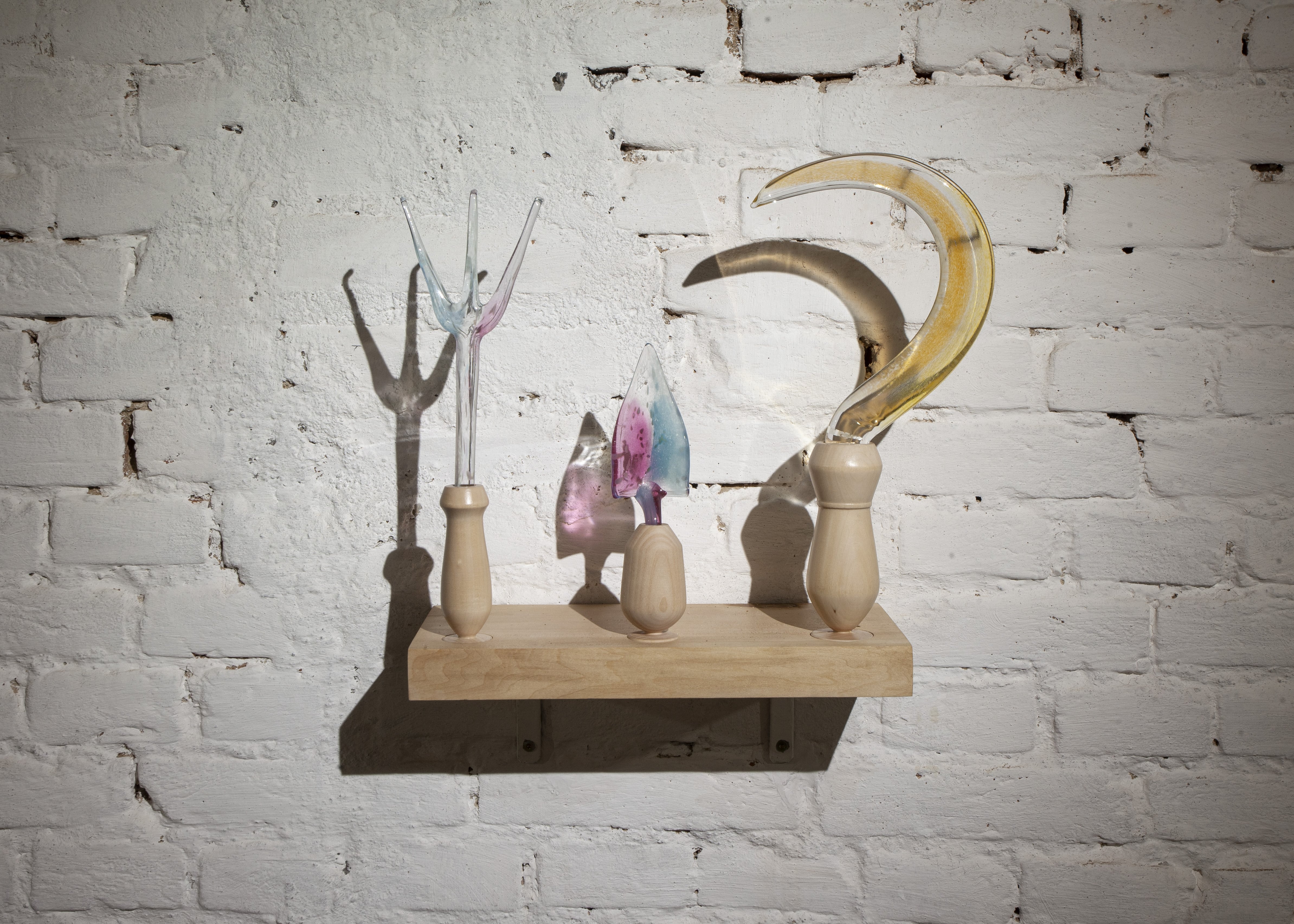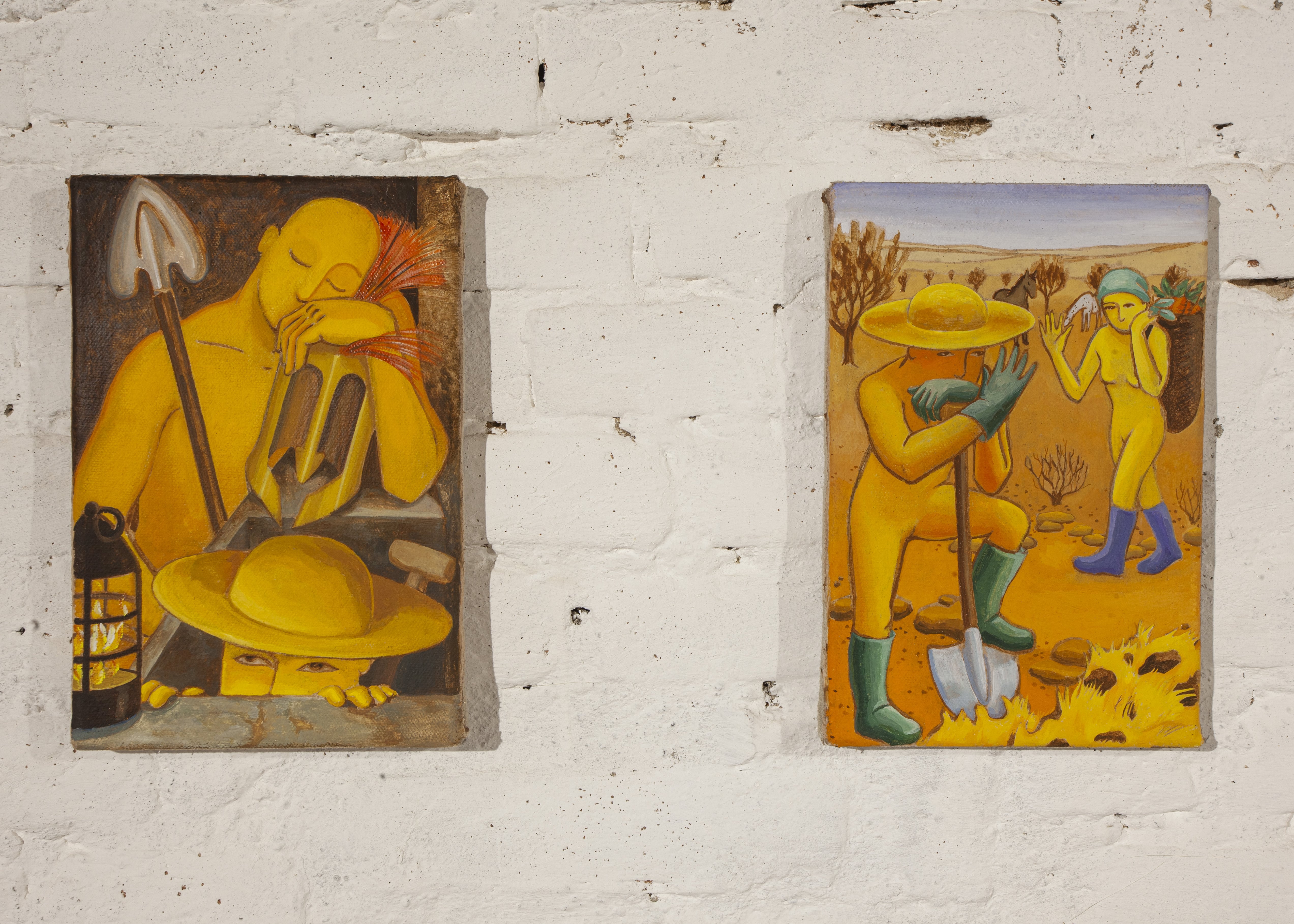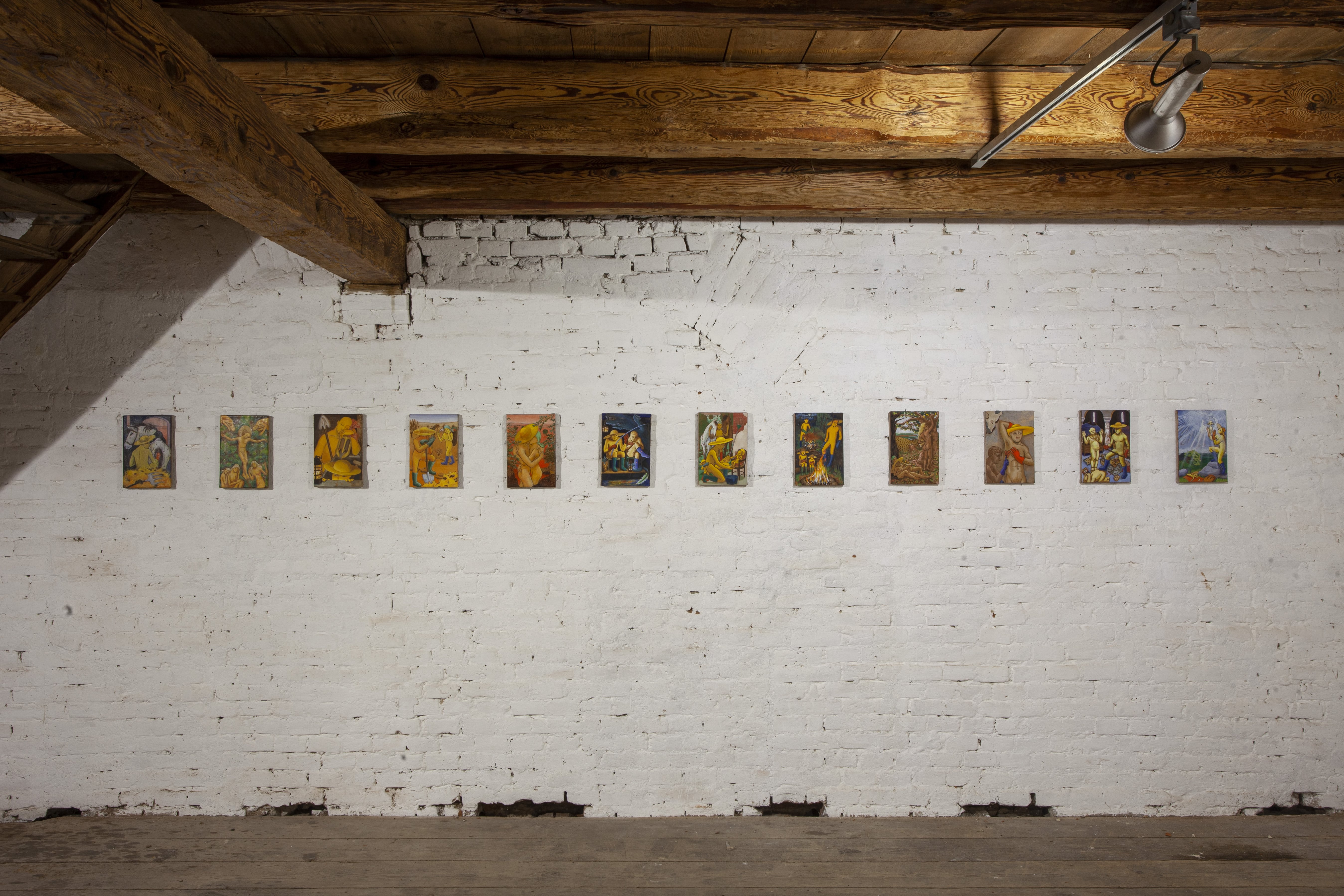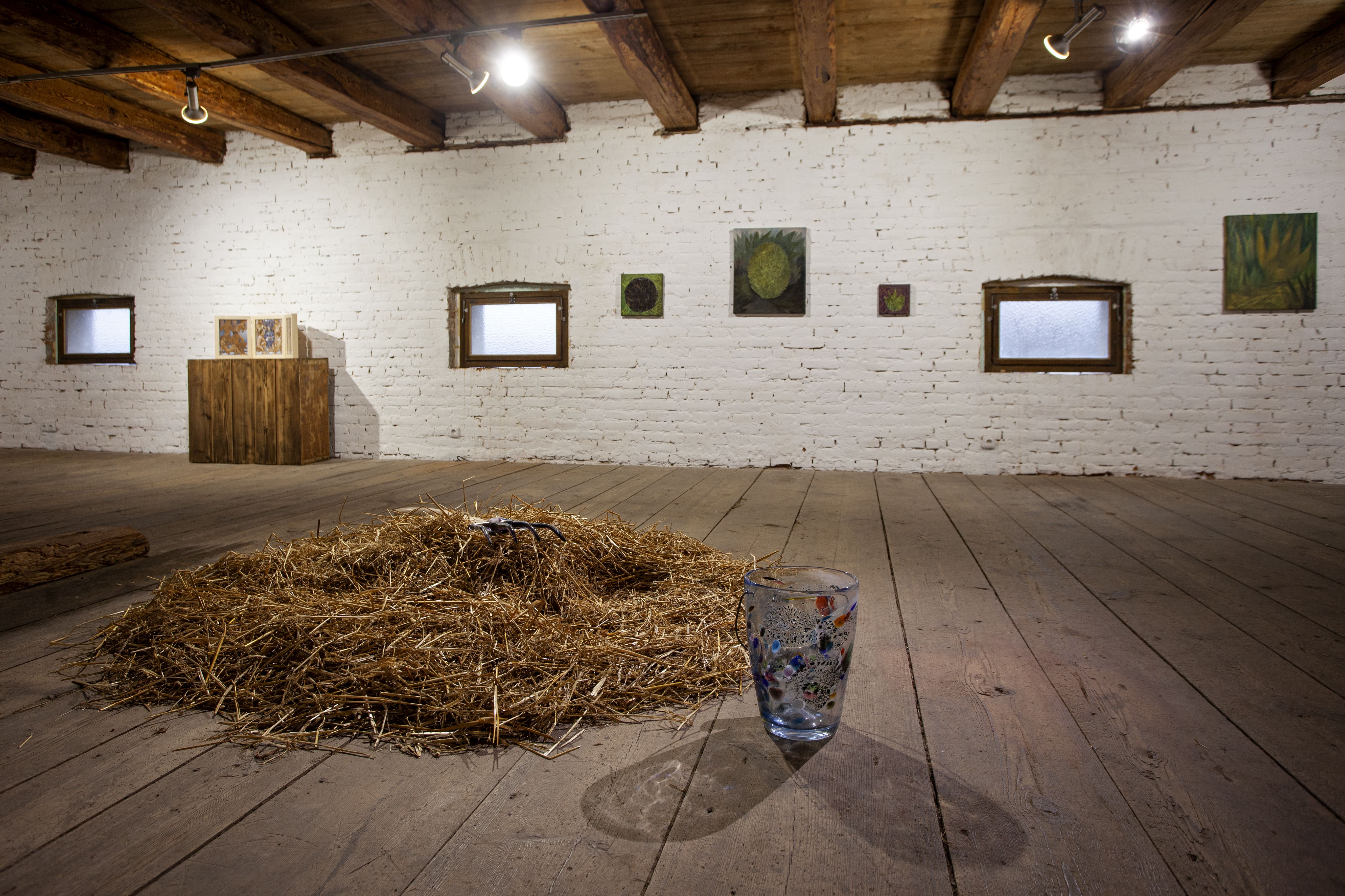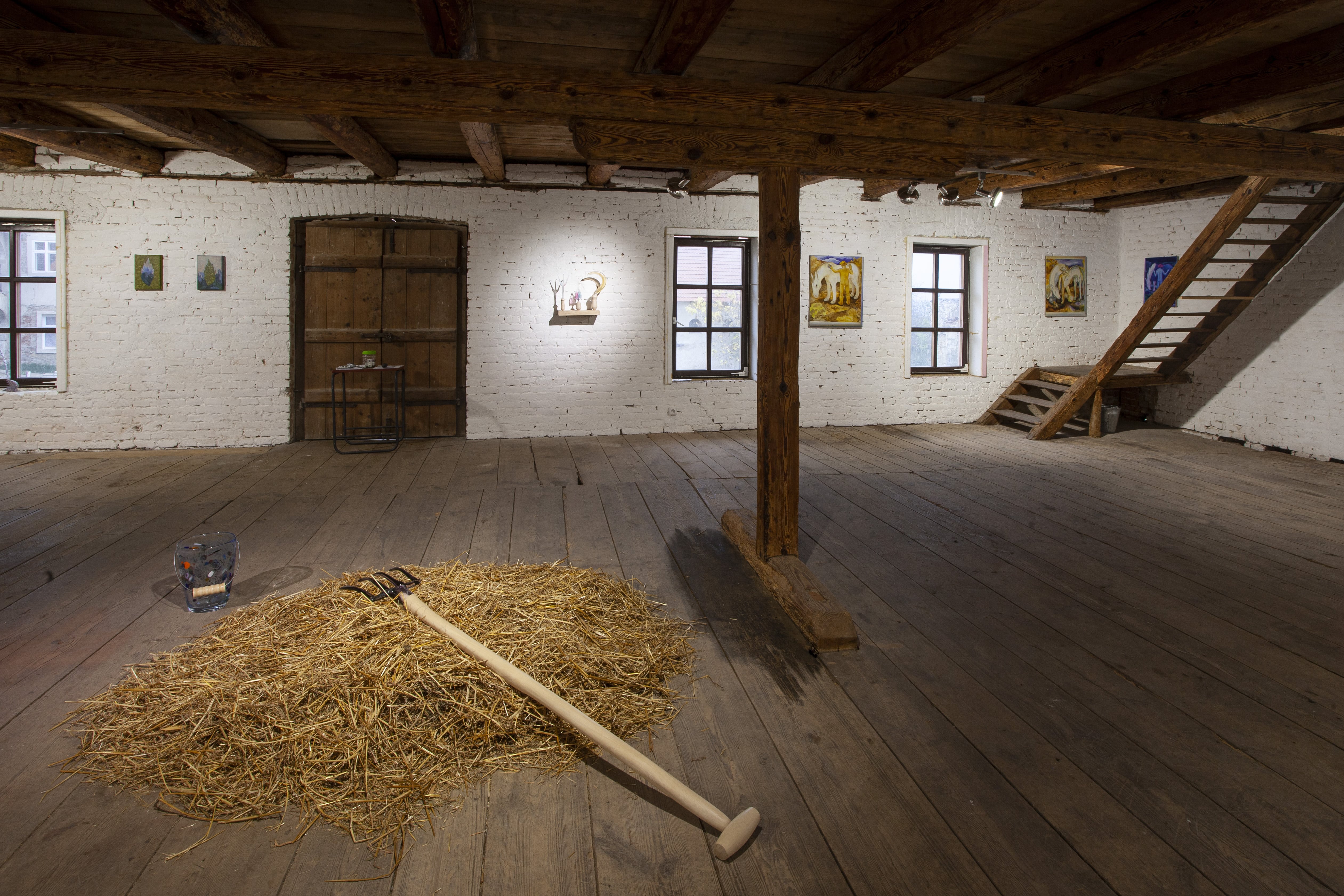 The paintings do not follow the traditional Christian narrative, but present their own storyline, which is only inspired by the traditional one. The cycle of twelve paintings on canvas is accompanied by gardening tools that (because of their characteristic fragility) can only be used by Christ Gardener. The installation also includes an altar triptych dedicated to the Virgin Mary among the Apostles.